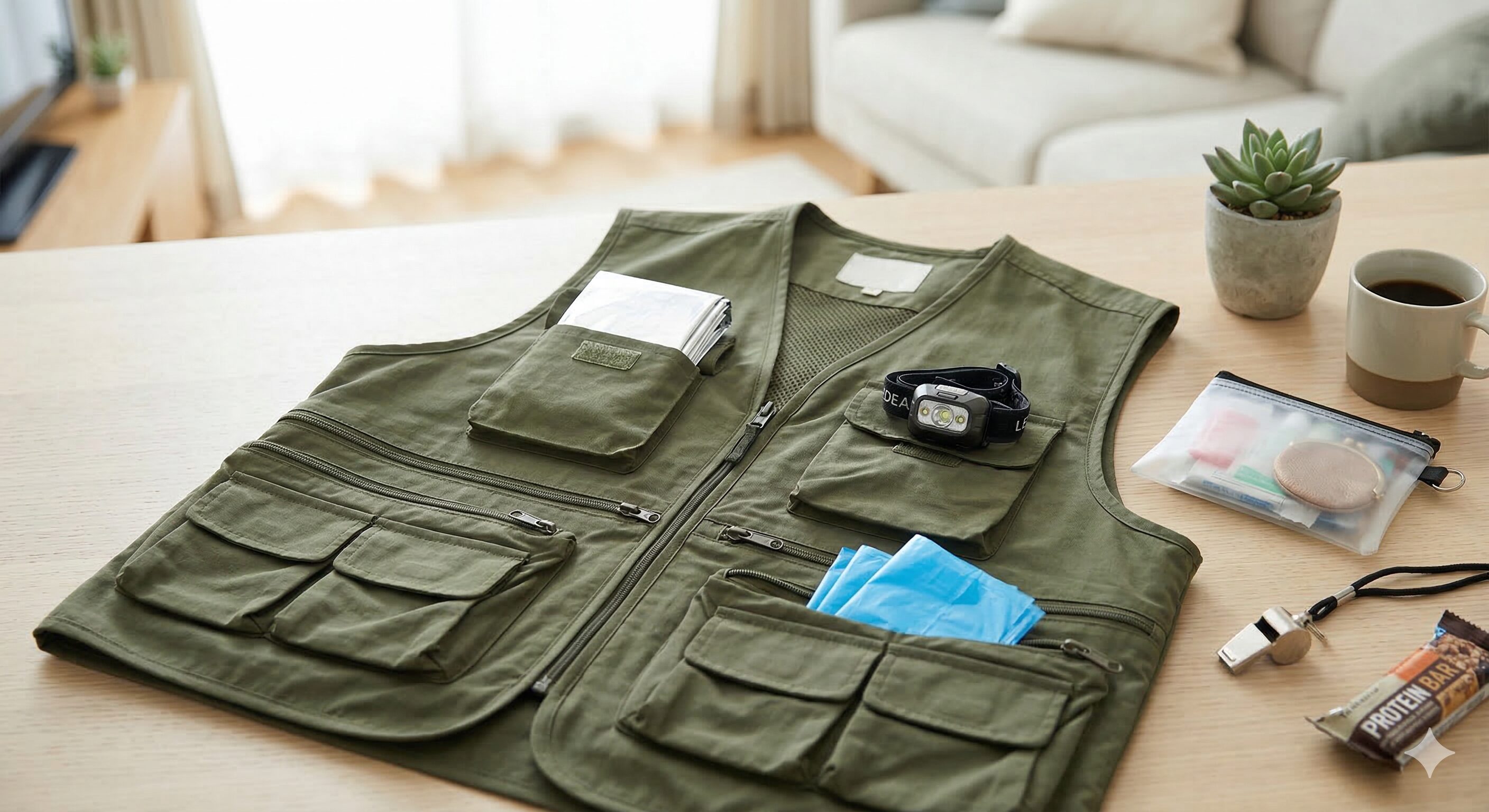 防災ベストには「すぐ使うもの」「命に直結するもの」を優先的に入れます。